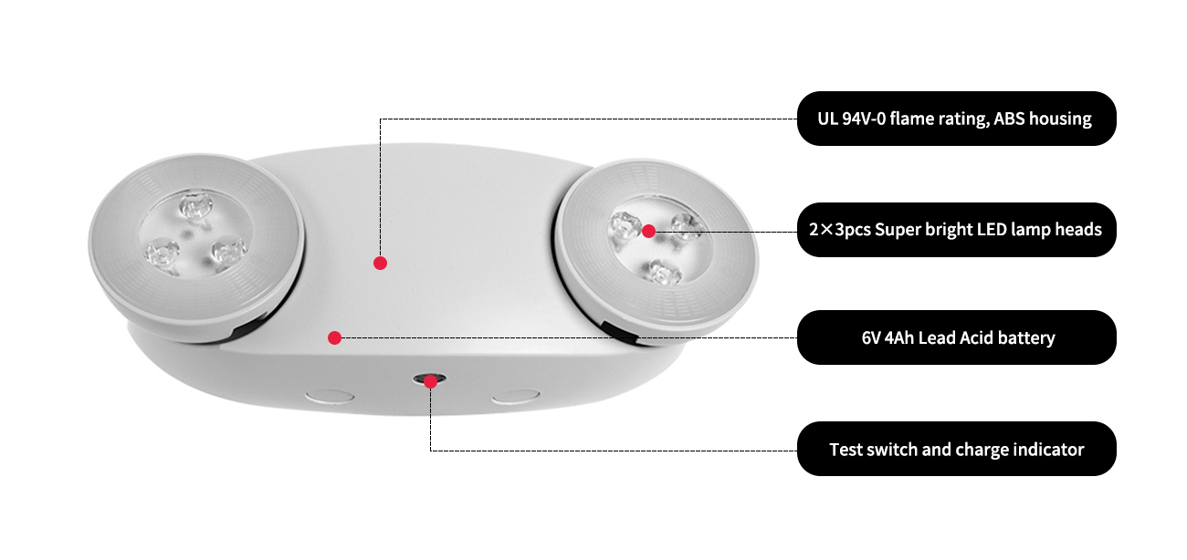 Dom / Proizvod / Hitno svjetlo / Svjetlo za hitne slučajeve s dvostrukom glavom / JLEU6 UL/CUL 600LM Visoka izlazna dvostruka glava Svjetlo za hitne slučajeve