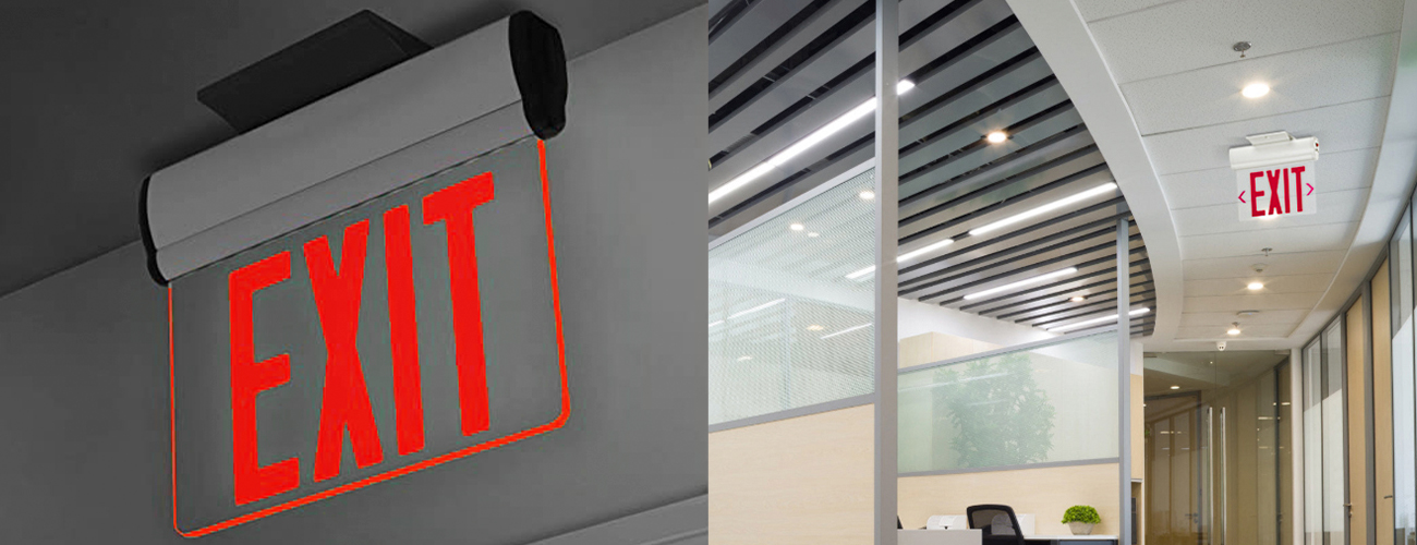 *Osvjetljenje - ova serija Edge Lit Exit Sign pruža dugo svjetlo LED -a. Jedinica je izrađena s crvenom visokom izlaznom LED pločom.  Potrošnja energije ocijenjena je na manje od 3 vata za jedinice AC samo modela. Potrošnja sigurnosnih kopija baterija ocijenjena je na manje od 1 vata.