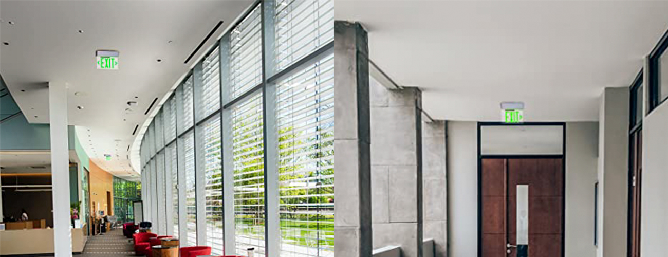 *Osvjetljenje - ova serija Edge Lit Exit Sign pruža dugo svjetlo LED -a. Jedinica je izrađena sa zelenom visokom izlaznom LED pločom.  Potrošnja energije ocijenjena je na manje od 3,5 vata za jedinice AC samo modela. Potrošnja sigurnosnih kopija baterija ocijenjena je na manje od 1 vata.