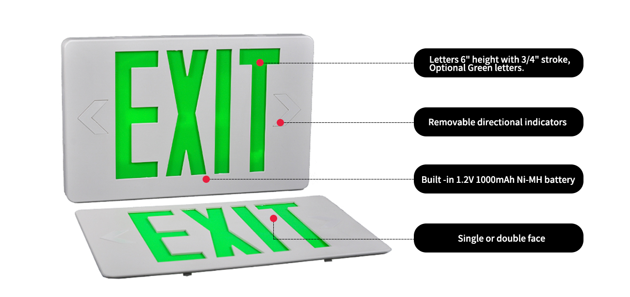 *Osvjetljenje - Osvjetljenje serije LED izlaznog znaka postiže se pomoću dugotrajnih, učinkovitih ultra svijetlih zelenih LED -ova. Difuzor koji podudara u boji eliminira vruća mjesta i pruge, pružajući optimalni izlaz svjetla.