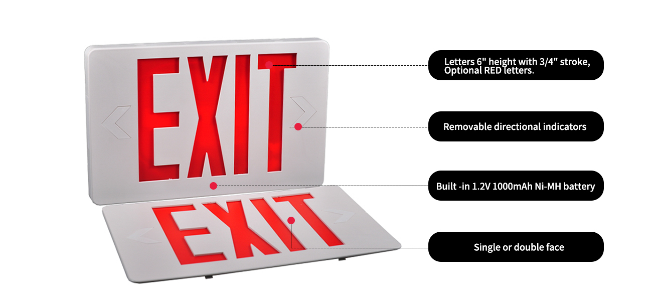 *Osvjetljenje - Osvjetljenje serije LED izlaznog znaka postiže se upotrebom dugotrajnih, učinkovitih ultra svijetlo crvenih LED -ova. Difuzor koji podudara u boji eliminira vruća mjesta i pruge, pružajući optimalni izlaz svjetla.