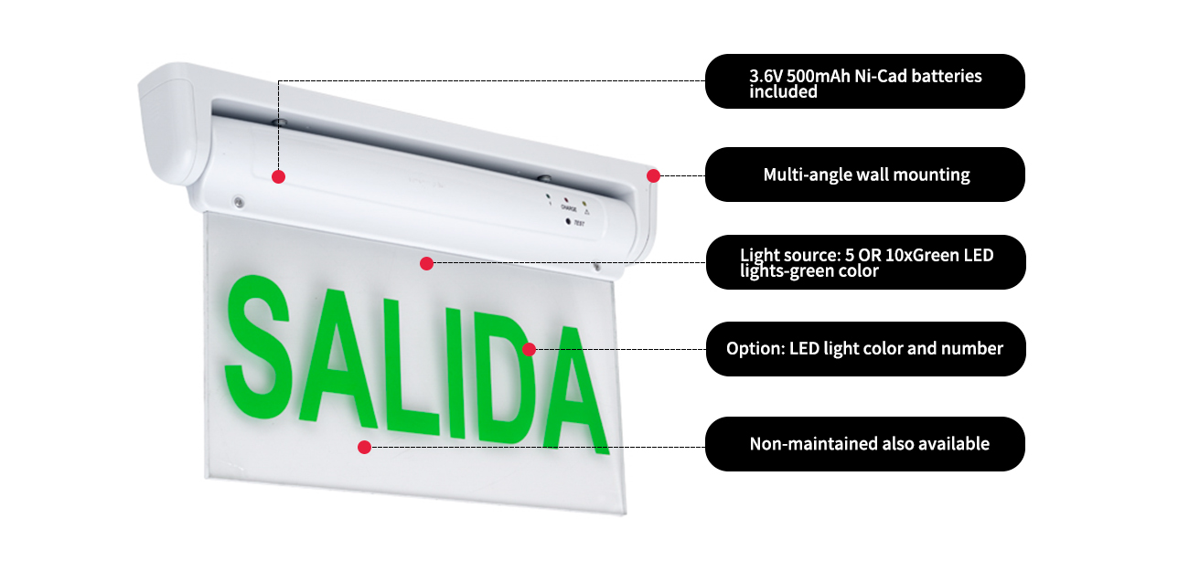 To je niz izlaznih znakova za hitne slučajeve dizajnirane i opremljene tehničkim rješenjima koja ga čine prikladnim za širok spektar aplikacija. Izbor etiketa izlaznih znakova čini svoj raspon prisvajanim za zahtjeve za rasvjetom u hitnim slučajevima na više mjesta kao što su uredi, restorani, hoteli, bolnice i opće komercijalne aplikacije.